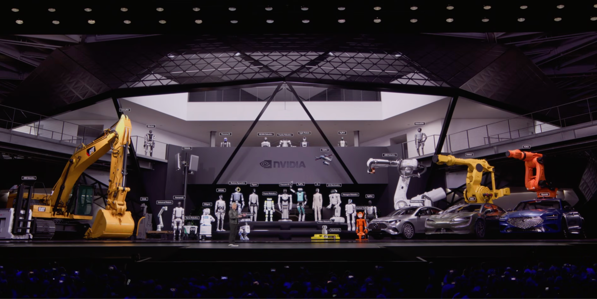 Por mucho que NVIDIA lleve ya varios años terminando sus eventos hablando de robótica no deja de ser emocionante ver todo lo que la empresa más valiosa del mundo está aportando a este sector. Y como se puede apreciar en la imagen, los robots humanoides ocupan el espacio central porque son la prioridad de futuro por el volumen de negocio que pueden llegar a suponer para la empresa.