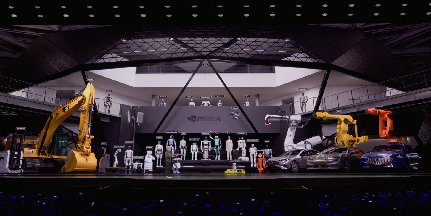 Bienvenidos a la era de la IA física es la representación de cómo percibe el futuro NVIDIA, es cierto que aún no lo vemos en el día a día por nuestras calles, pero si ellos no lo hacen posible, ¿Quién lo va a hacer?