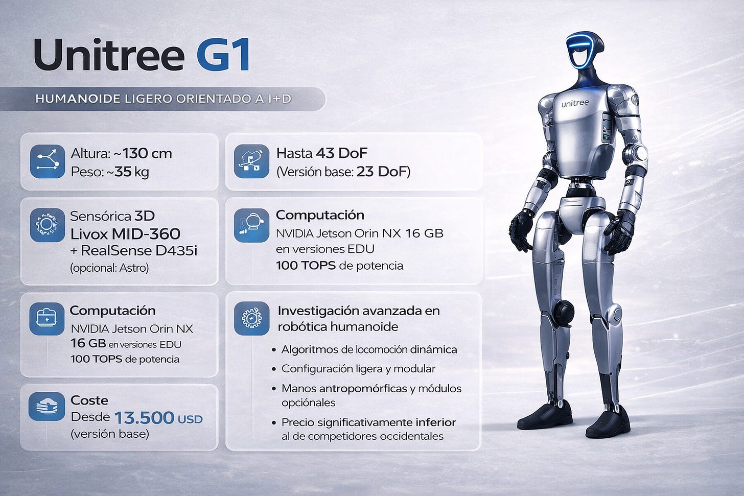 Porque una cosa hay que reconocer, tecnológicamente hablando el G1 de Unitree seguramente no esté a la altura de Atlas de Boston o de Optimus de Tesla, sin embargo es el robot que usan la mayoría de laboratorios que trabajan en IA Física. Es una cuestión de accesibilidad y en eso la empresa dirigida por Xingxing Wang es imbatible.